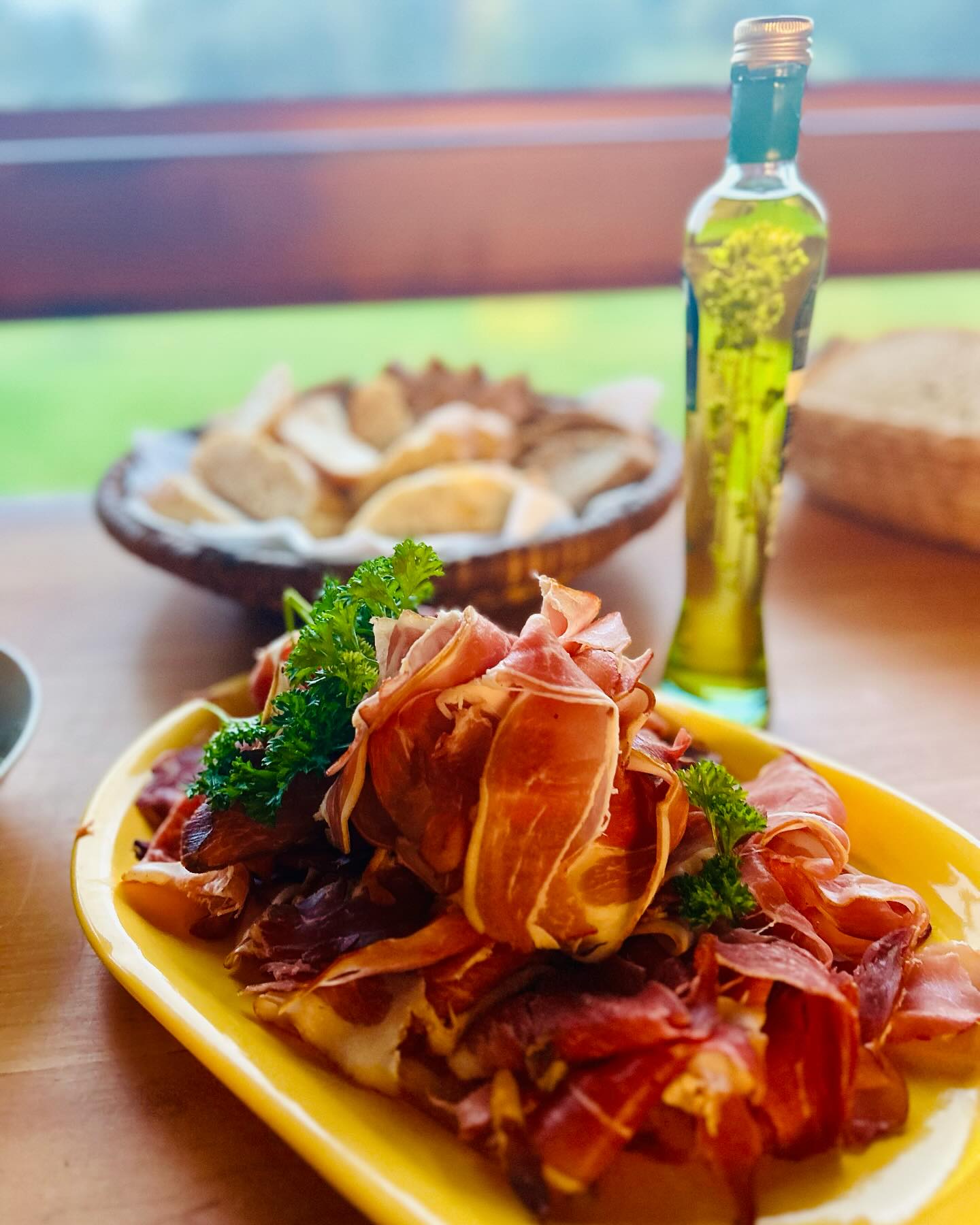 - Sušená šunka od kosti-dip,olivový olej,tramenzzino