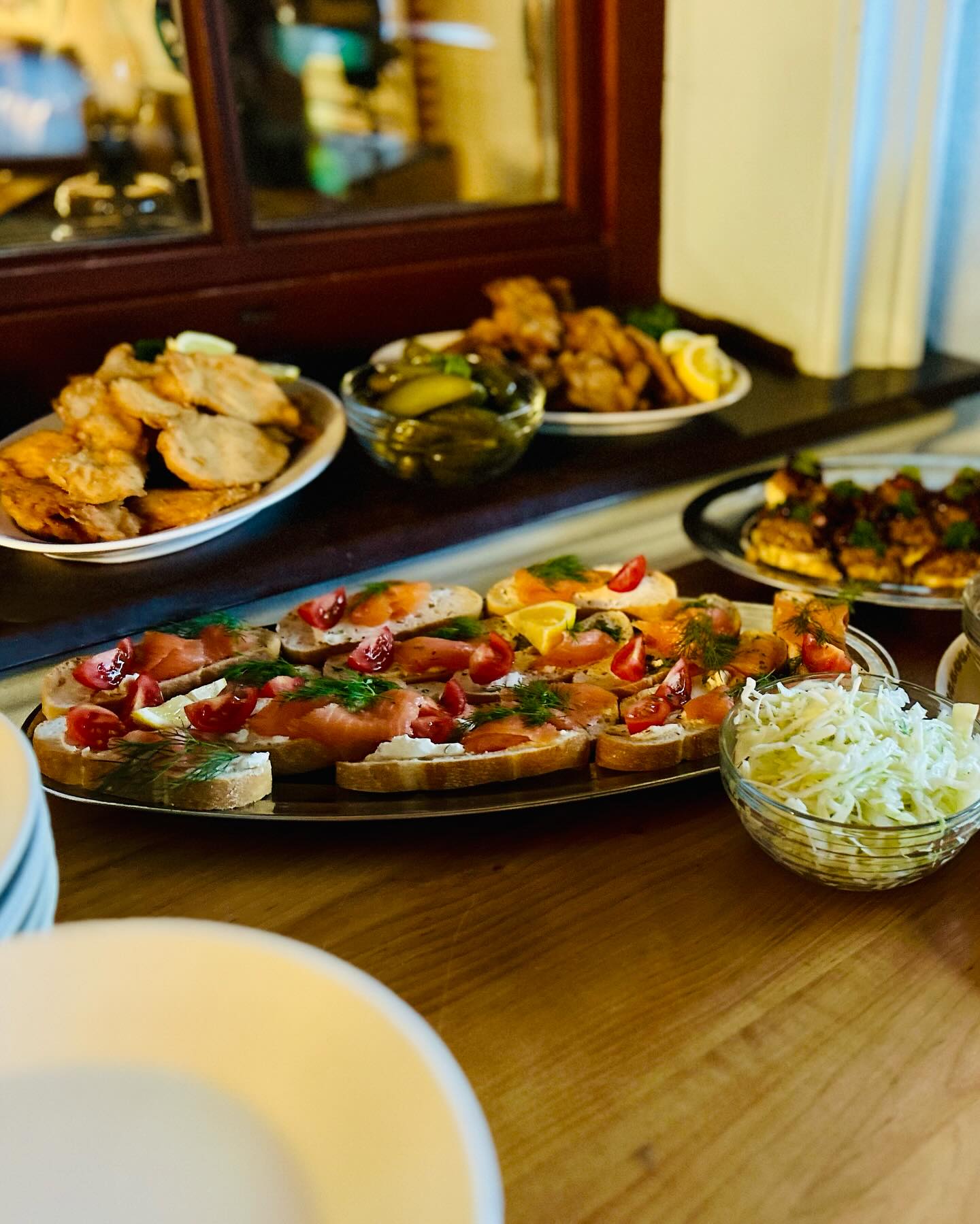 - doplňky(olivy,balkánský sýr,slanina,olivový olej,dip,bylinková foccacia