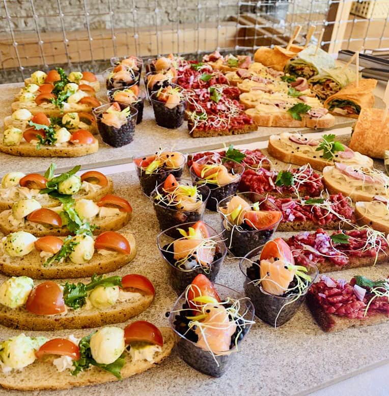• Jednohubky s cherry rajčaty, mozzarellou a bylinkovým pomazánkou