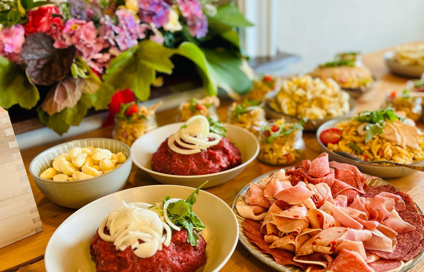- Studený těstovinový salát s kuřecími prsíčky v bylinkách, domácí majonéza, čerstvá zelenina