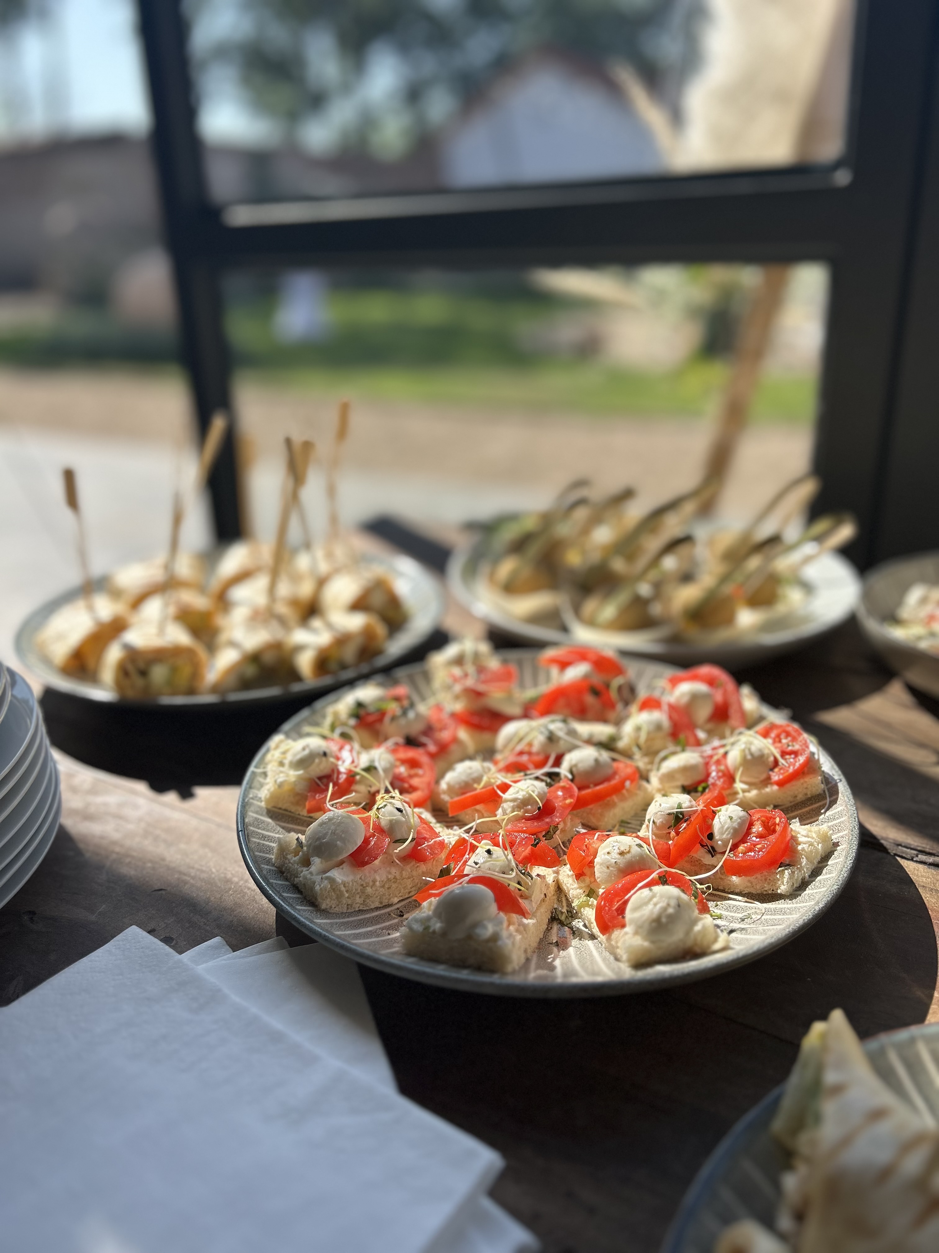 - Jednohubky s cherry rajčaty, mozzarellou a bylinkovou pomazánkou