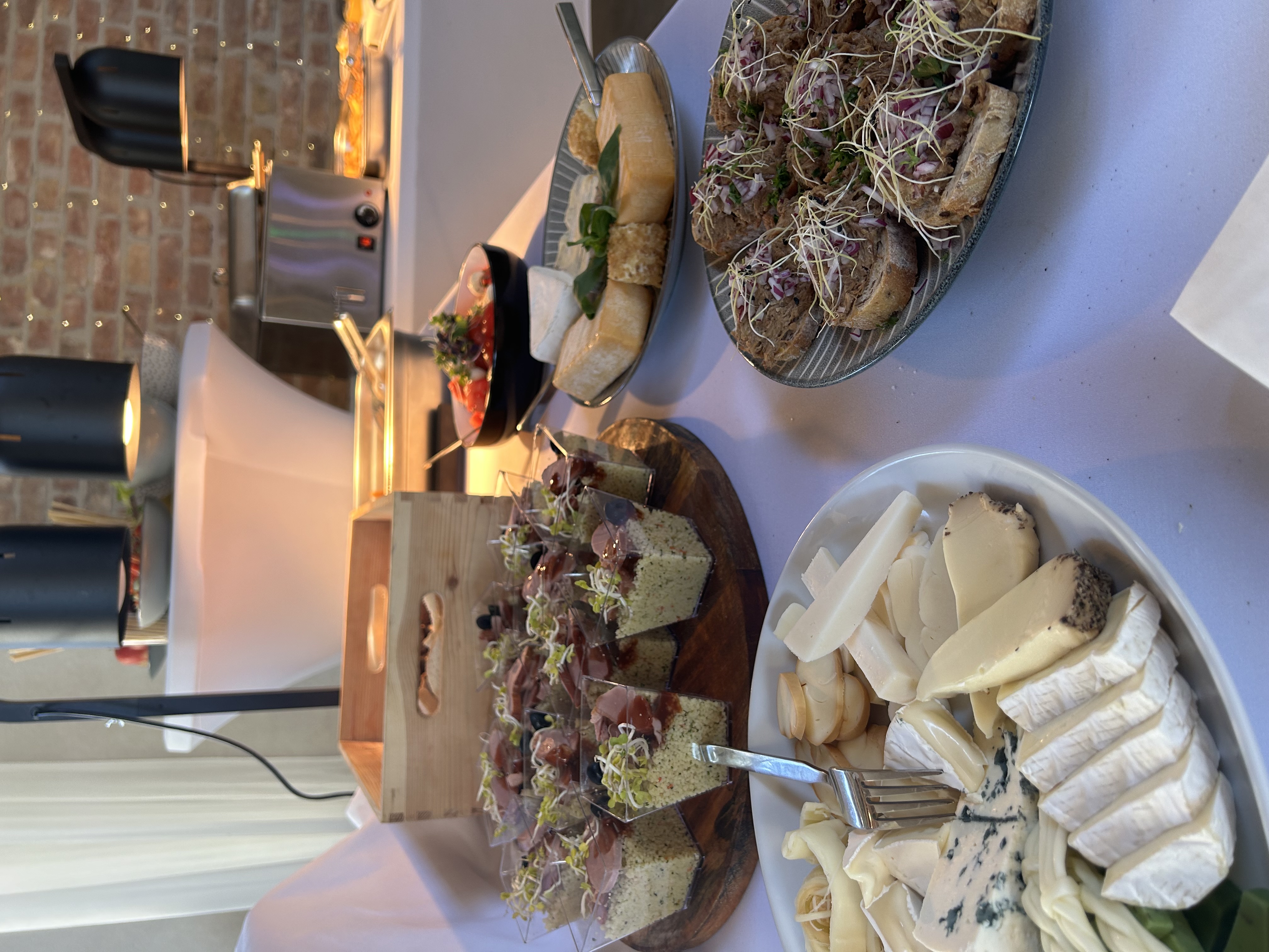 - Variace francouzských sýrů, olivy, hroznové víno Hovězí tatarák s opečeným česnekem a topinkami