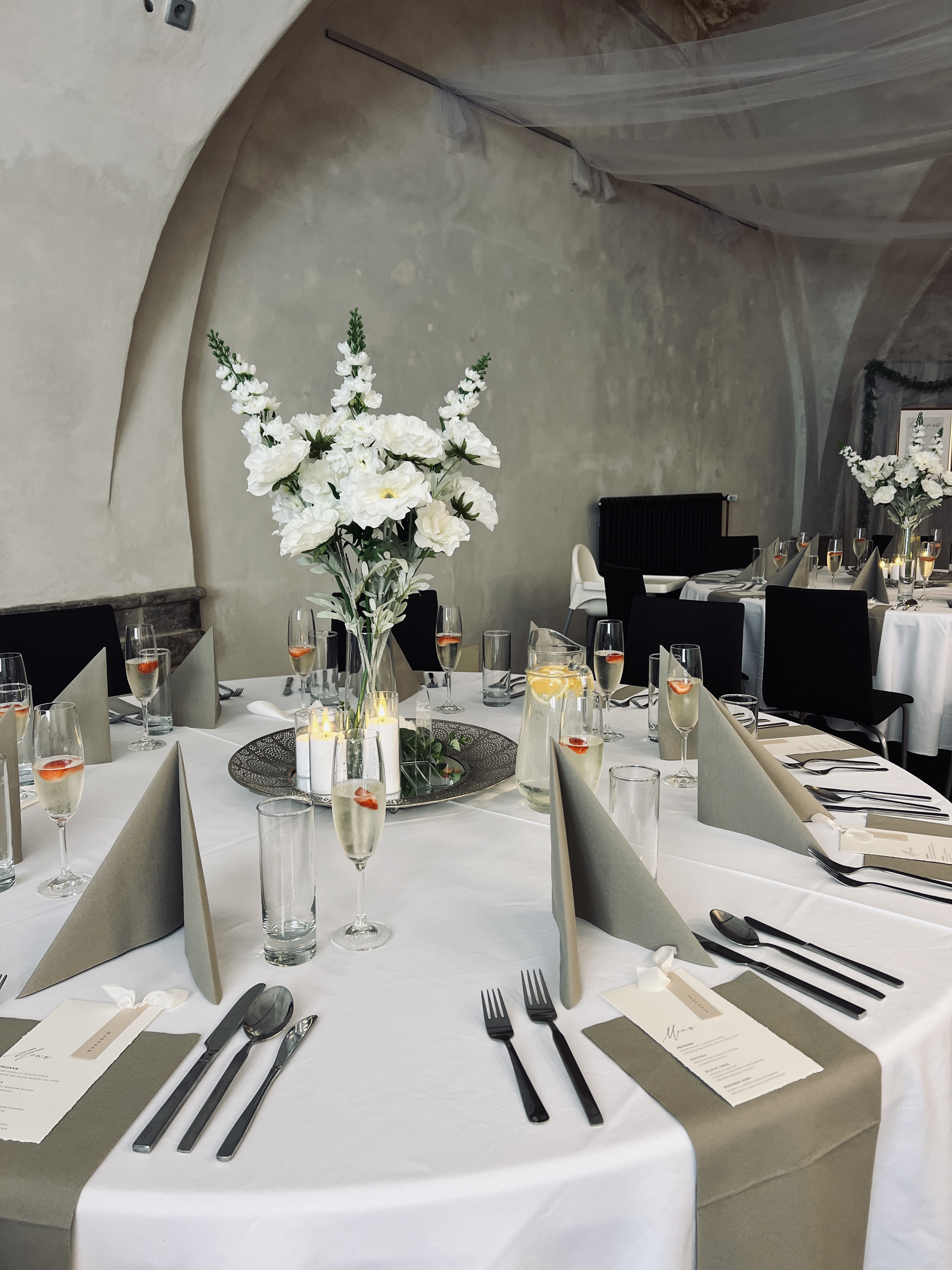 - Svíčková na smetaně s variací houskového a karlovarského knedlíku, brusinky, šlehačka Grilovaný losos, restovaná zelenina na másle, petrželkové brambory