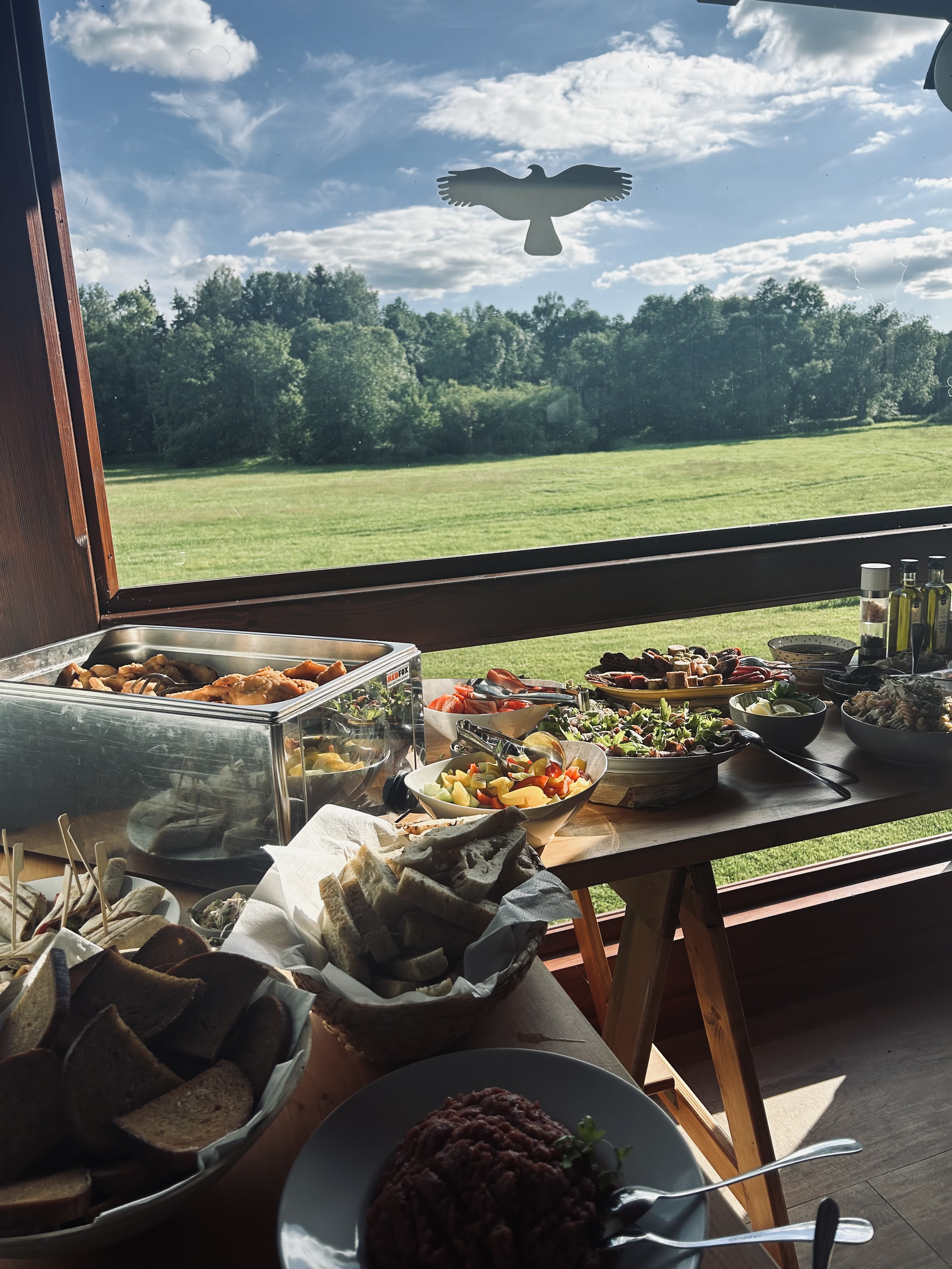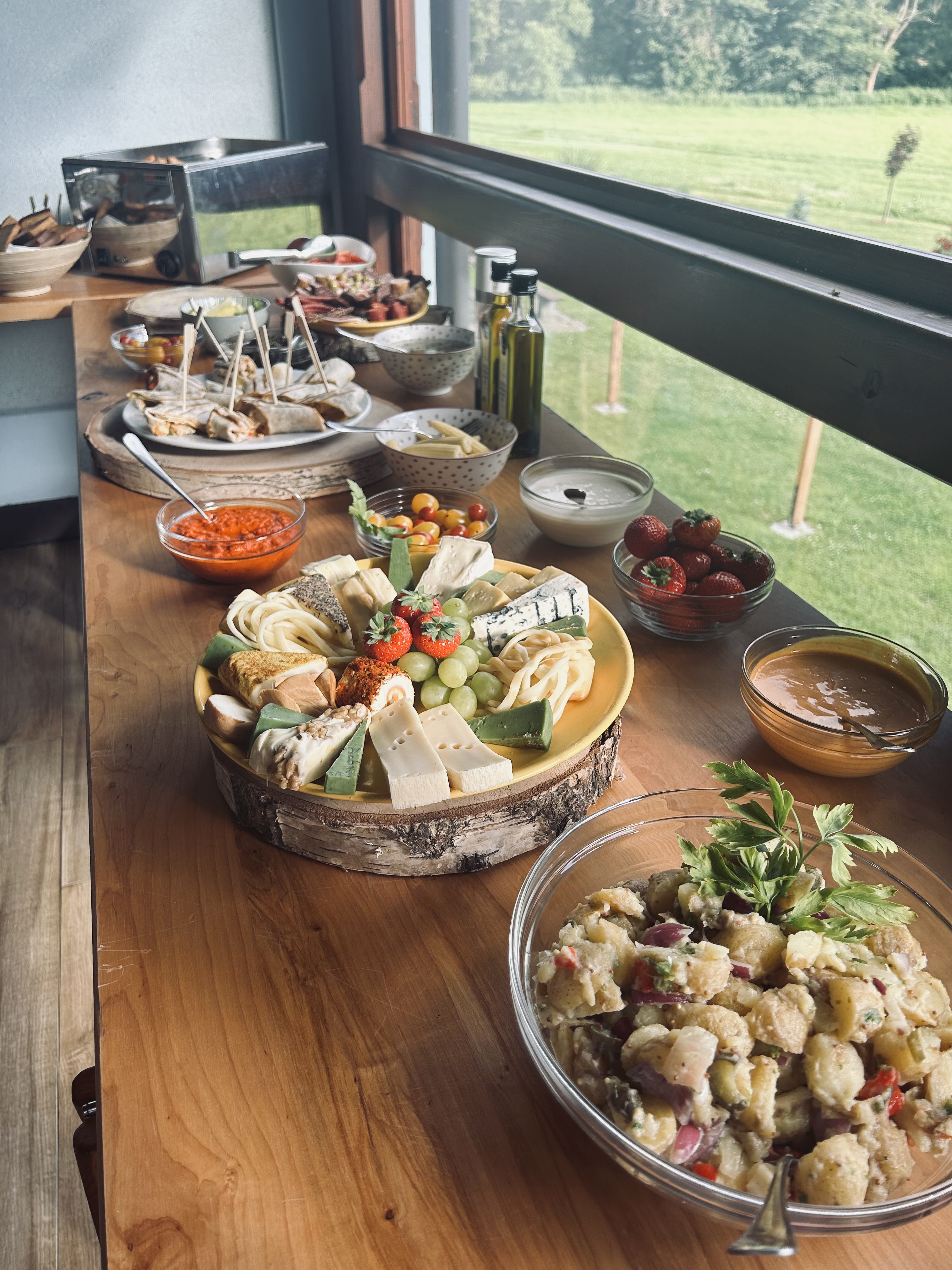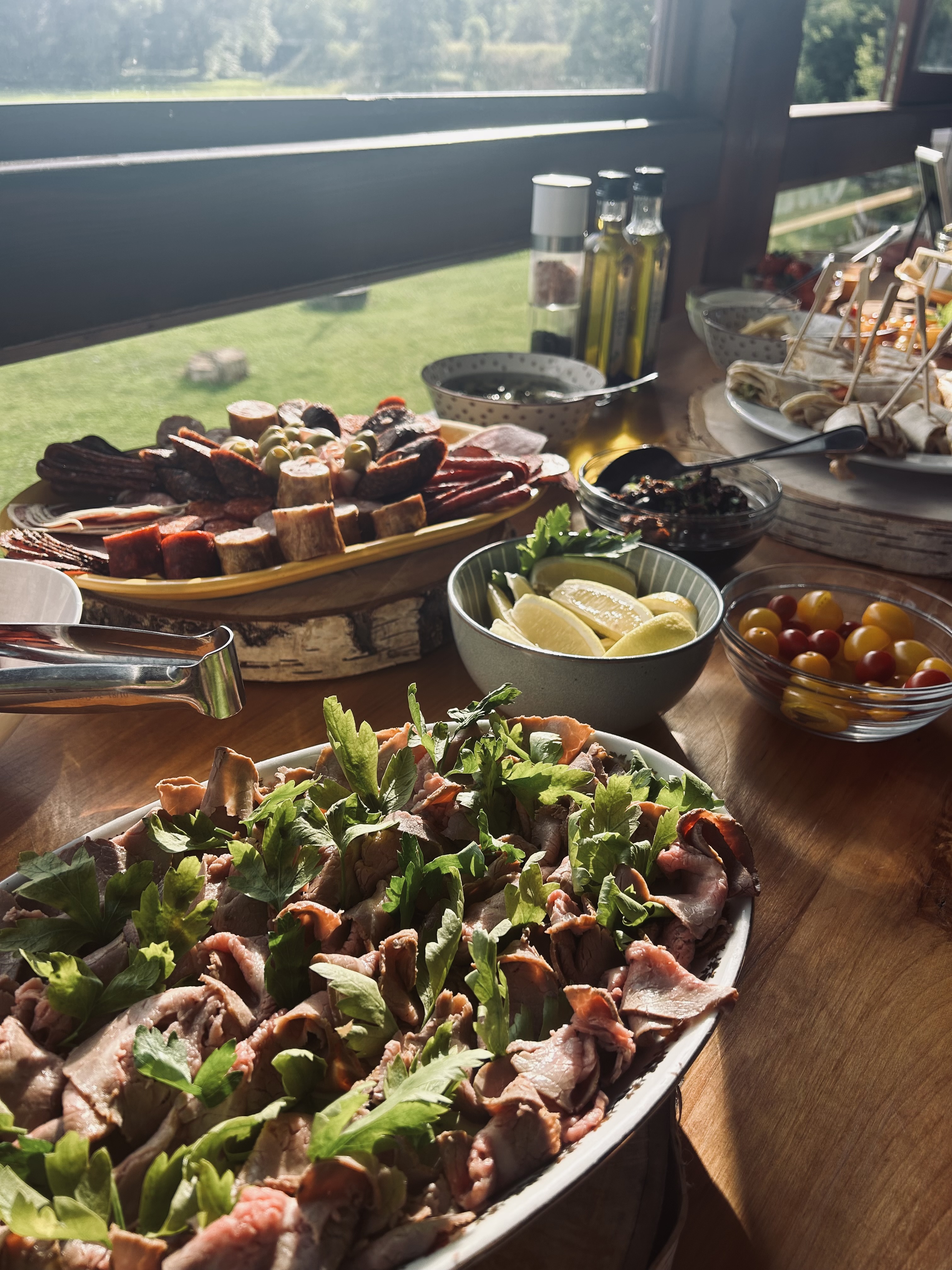 - doplňky (olivy, balkánský sýr, slanina, olivový olej, dip, bylinková foccacia)