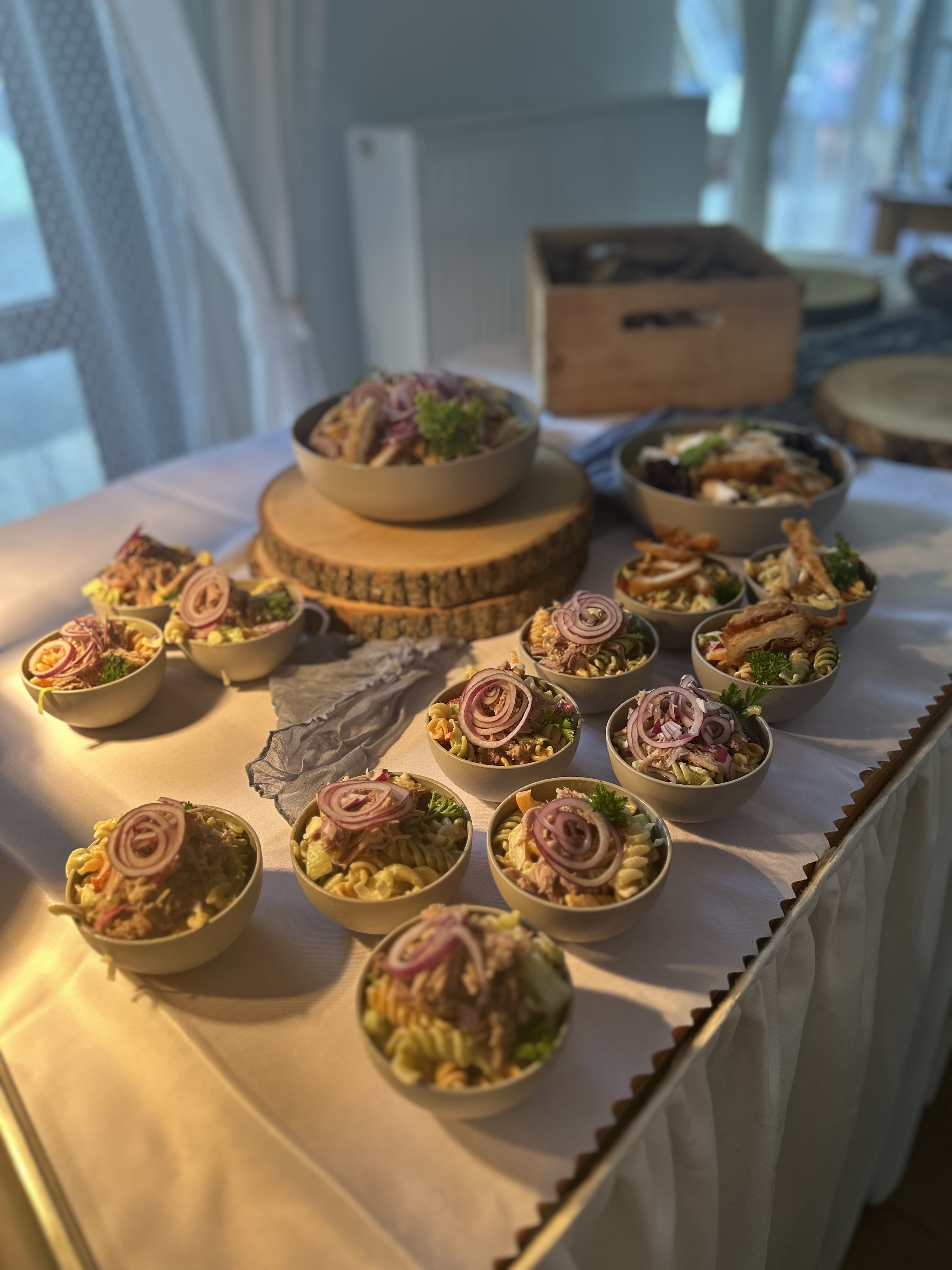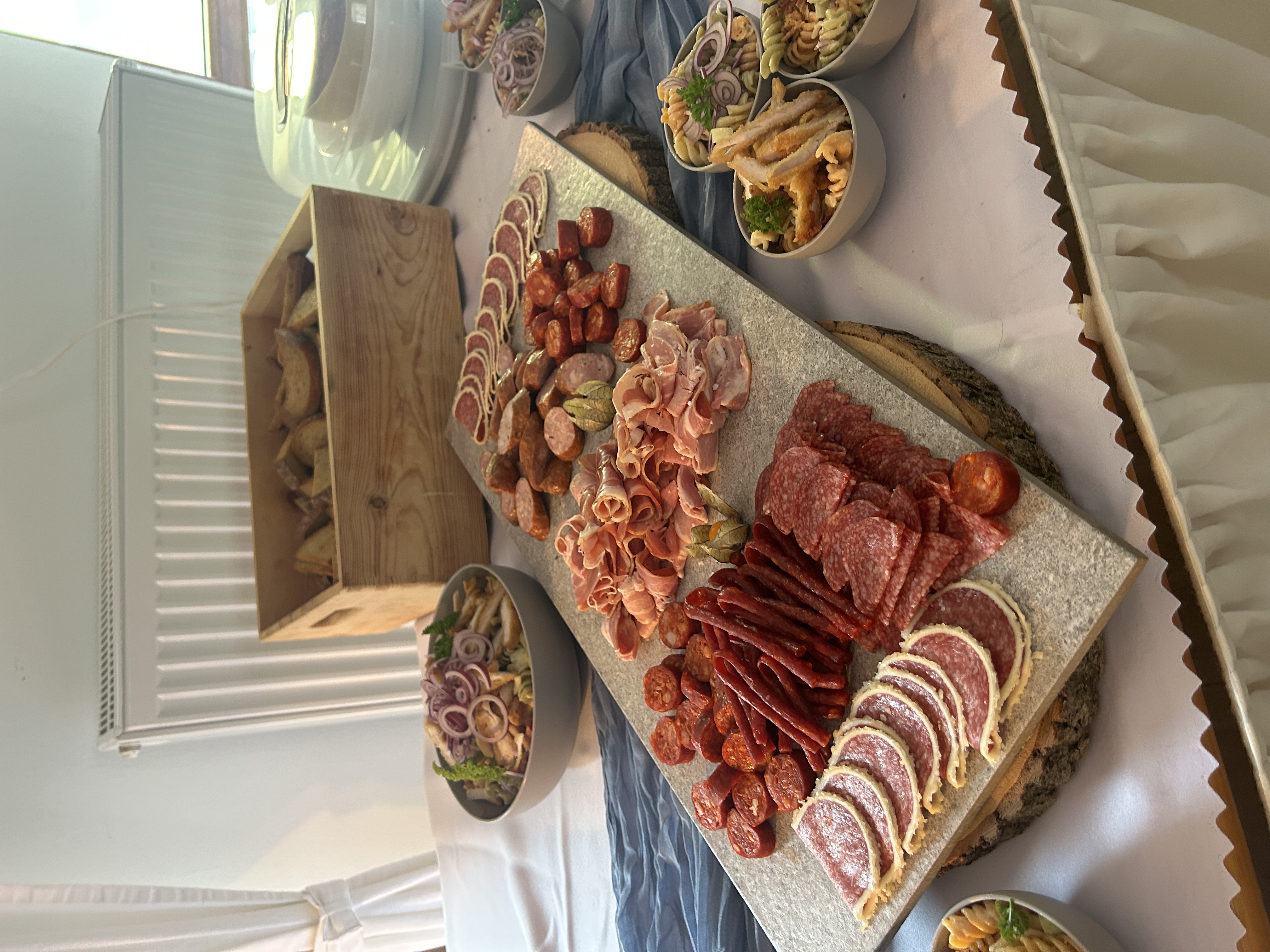 - doplňky (olivy, balkánský sýr, slanina, olivový olej, dip, bylinková foccacia) (zde si může host nabrat a nakombinovat svůj oblíbený salát)
