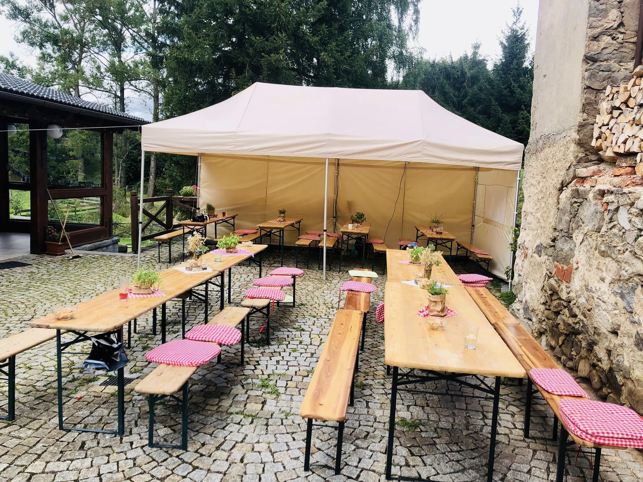 - Silný hovězí vývar se zeleninou, domácími nudlemi a játrovými knedlíčky
